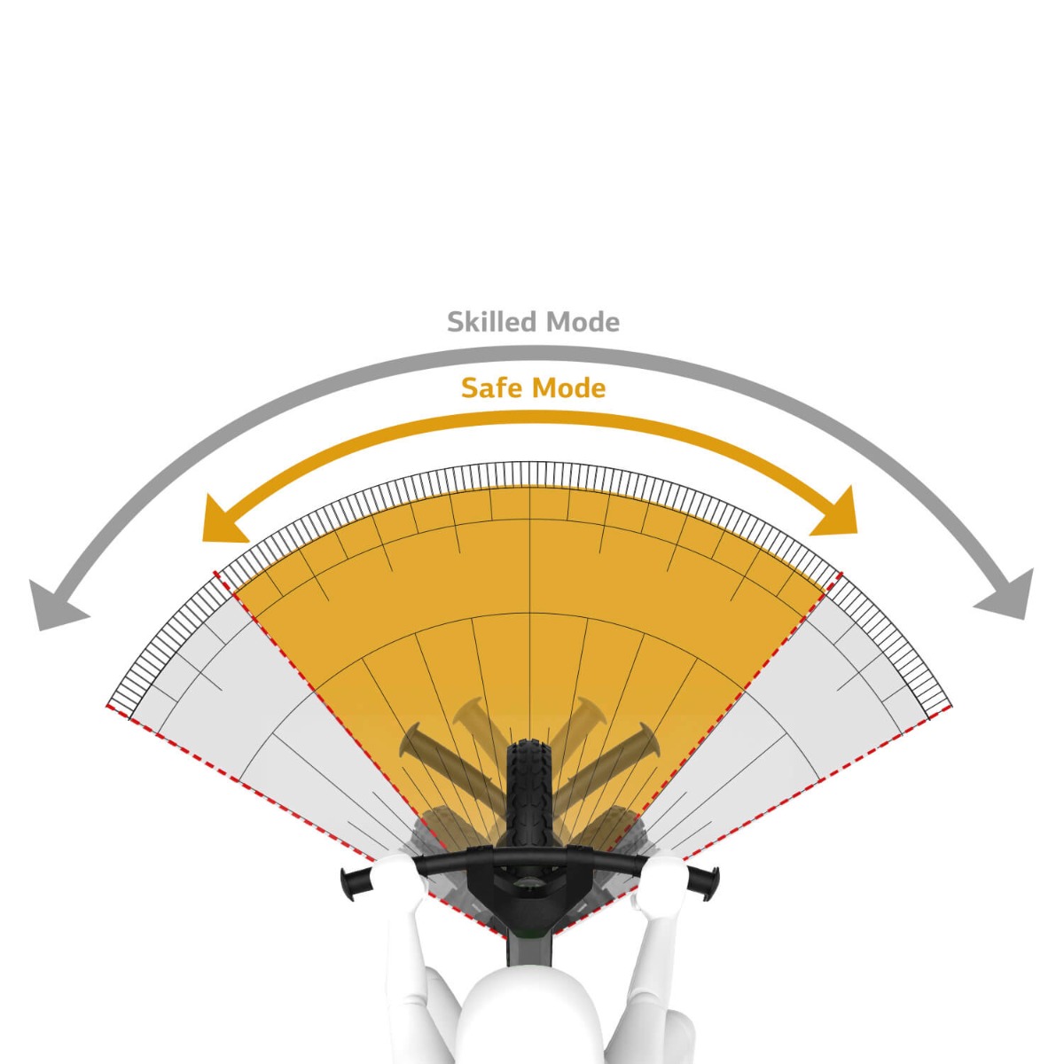 Безпека, звичайно, також має першорядне значення для вас, як шукач пригод. Тому всі моделі поставляються з регулятором рульового управління на два положення: безпечний режим навчання і режим профі. Тут немає гострих країв або частин, що виступають, а підніжки є невід’ємною частиною конструкції.