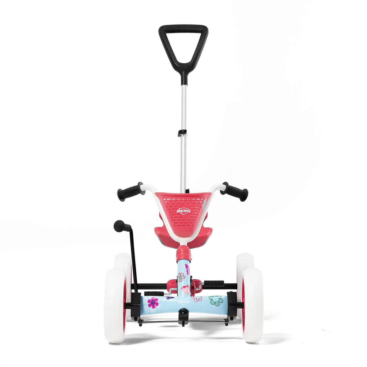 Крім регульованої ручки-штовхача, Buzzy Bloom 2-in-1 оснащений ручним гальмом, механізмом вільного ходу для штовхання та блокуванням керма.